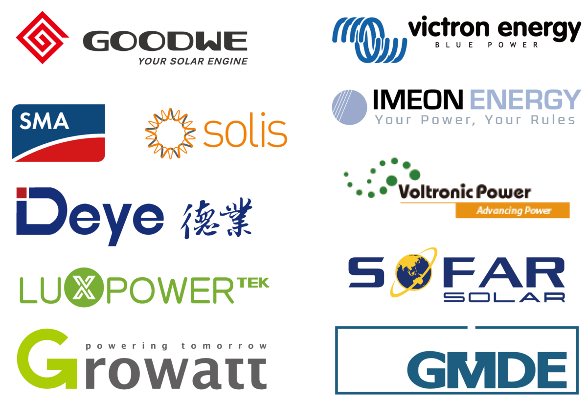 La nueva batería modular de litio Dyness B4850 de 48V es compatible con los inversores solares más populares del mercado. Inversores híbridos de marcas reconocidas como SMA, Victron Energy, Imeon, Voltronic y Growatt pueden usarse con los módulos de litio Dyness B4850.